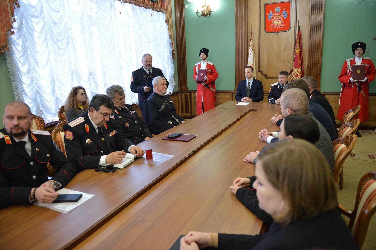 Вопросы развития казачьей экономики обсудили на совещании в Краснодаре. Его провели вице-губернатор, войсковой атаман Александр Власов и руководитель департамента развития бизнеса Василий Воробьёв. В обсуждении приняли участие атаманы и руководящий состав краевых профильных фондов. В рамках встречи Кубанское казачье войско и региональный департамент развития бизнеса и внешнеэкономической деятельности подписали соглашение о сотрудничестве.