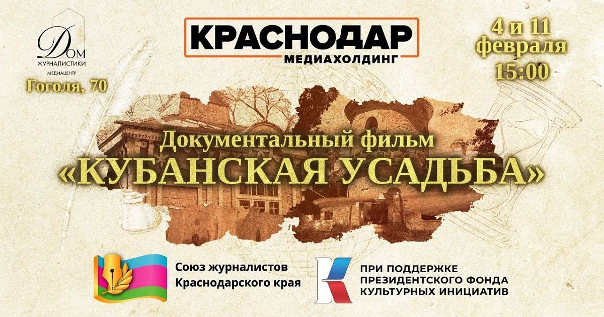Открытый показ документального фильма о судьбе кубанских усадеб пройдет в краевом центре. Проект сняла команда медиахолдинга «Краснодар». Об этом сообщили в нашем МАХ-канале.