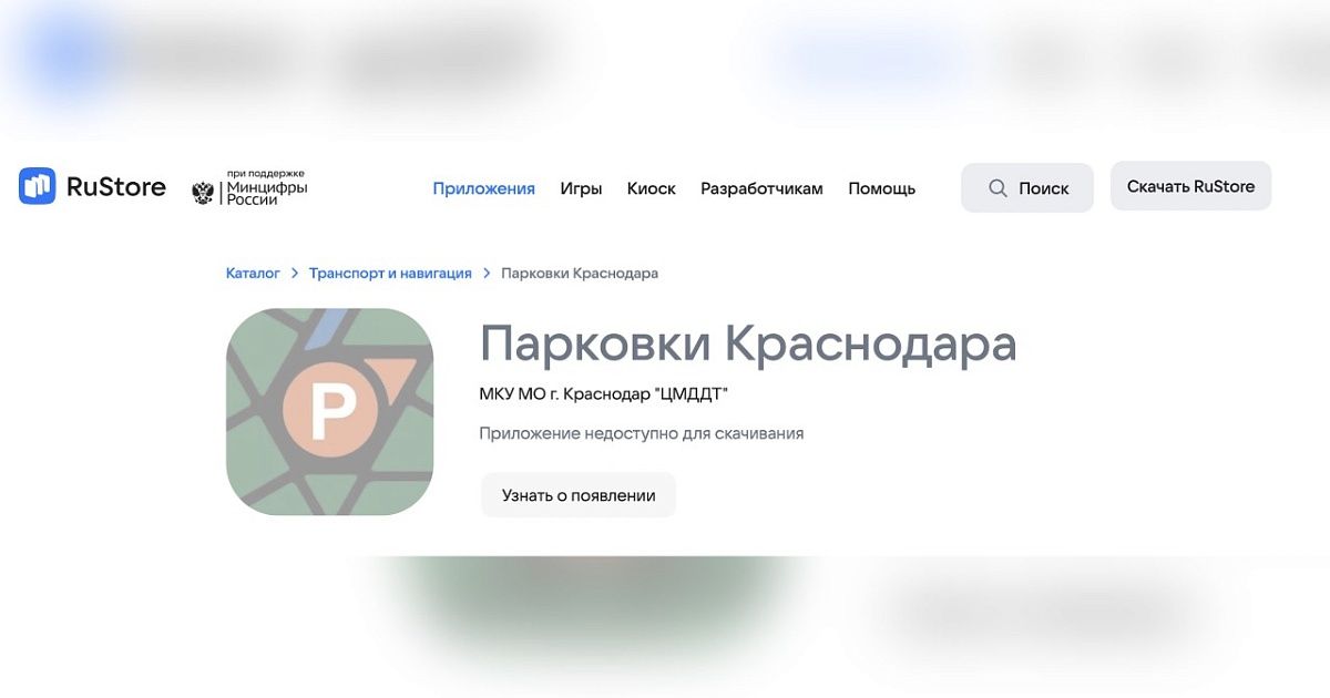 Магазин мобильных приложений RuStore скрыл приложение «Парковки Краснодара» на фоне инцидента с появлением его фейковой версии. В настоящее время оно недоступно для скачивания.