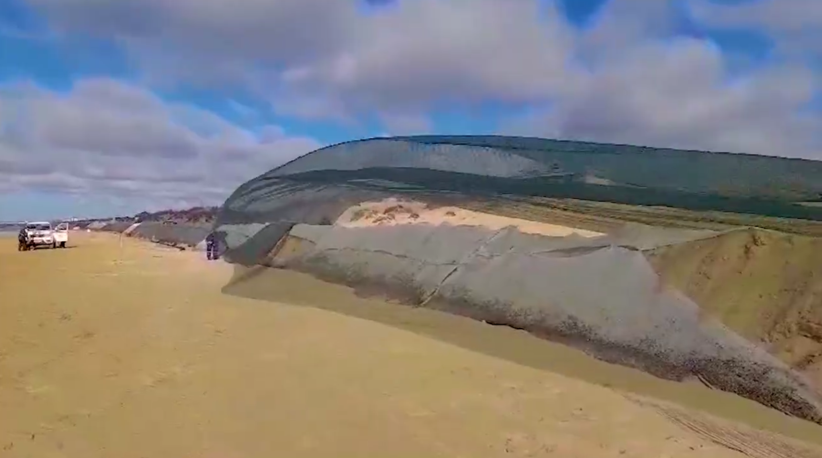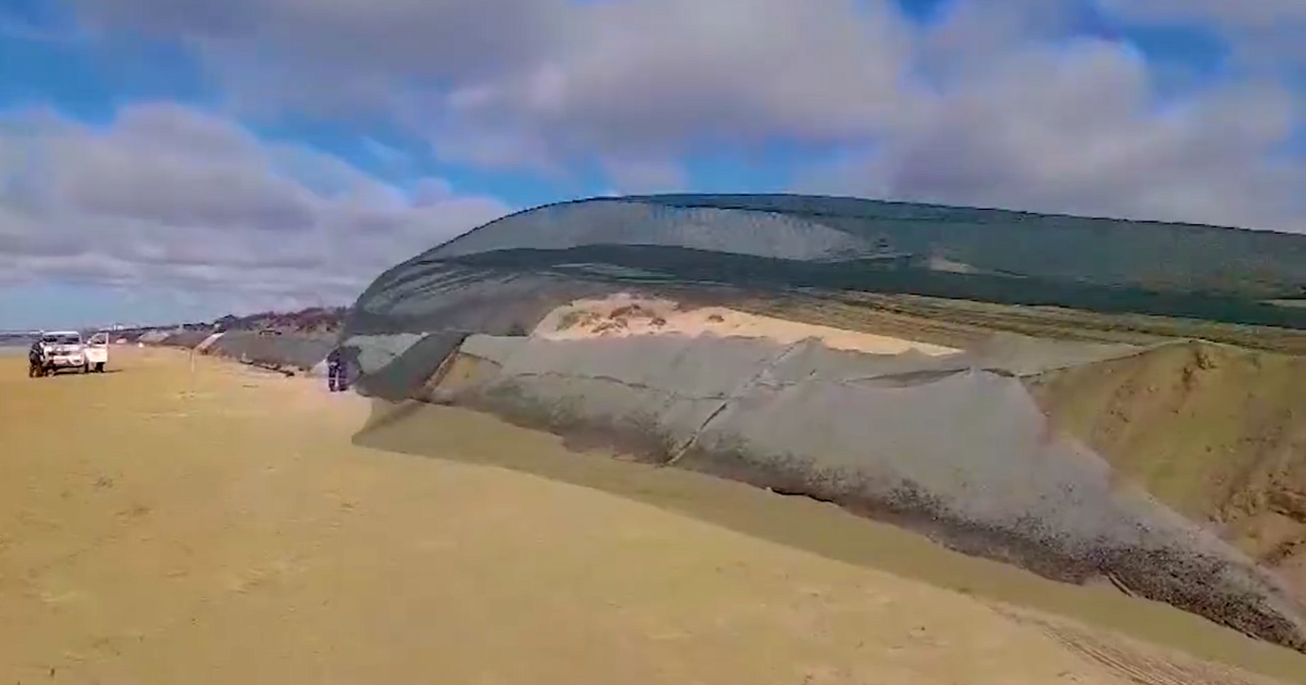 — Сети, которые уже выполнили свою задачу и удержали фракции нефтепродуктов, вмерзли в песок. При текущих погодных условиях – сильный ветер и мороз - достать их, не порвав, не получилось, — пояснили в ведомстве.