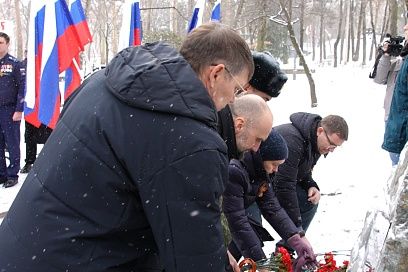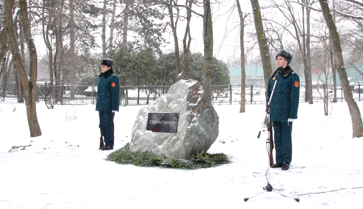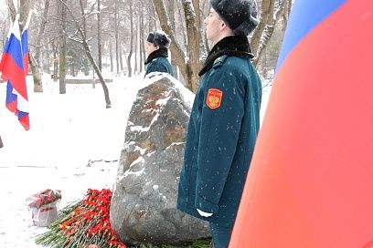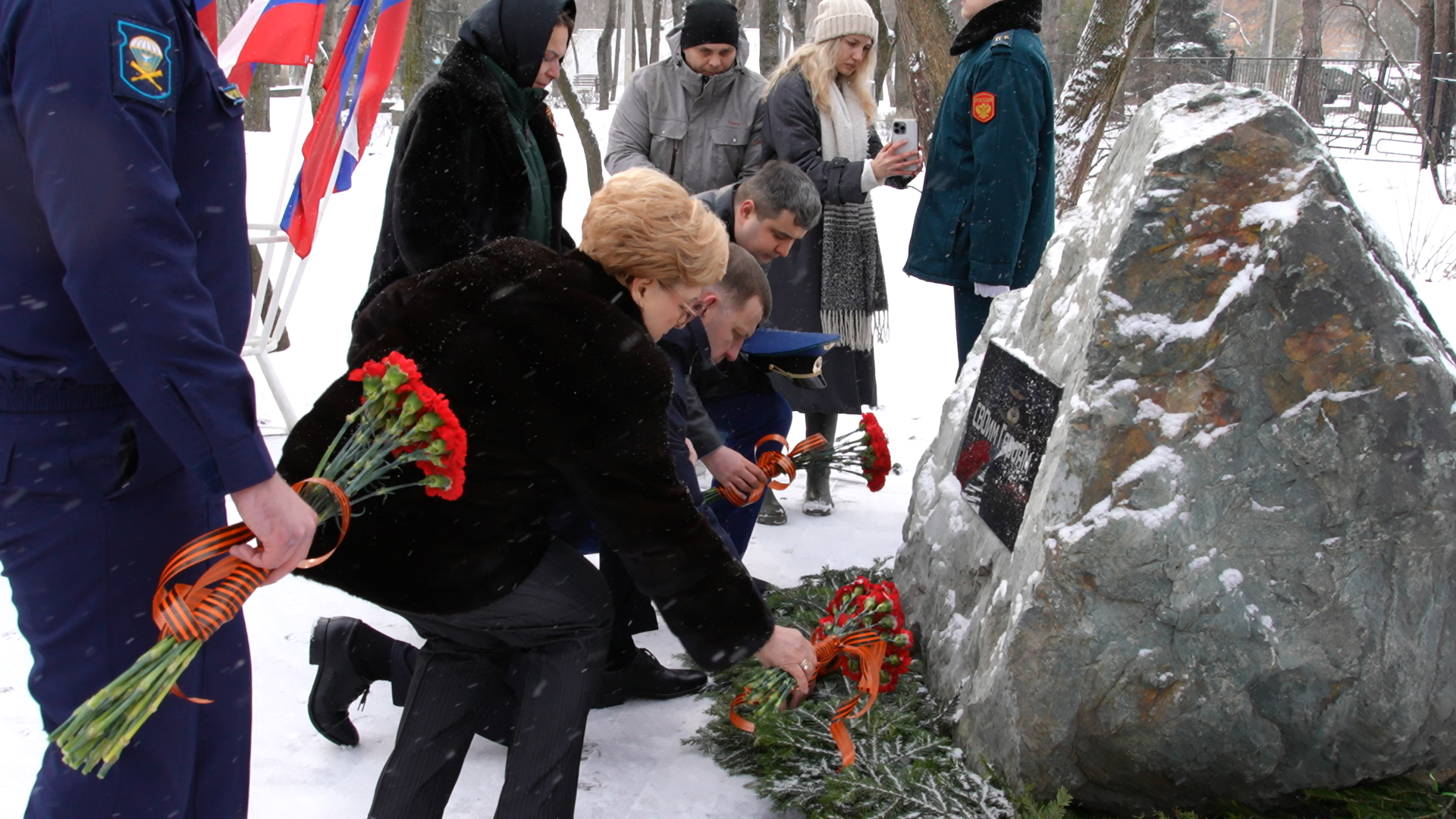 Погибших героев почтили минутой молчания. К памятному камню возложили цветы.