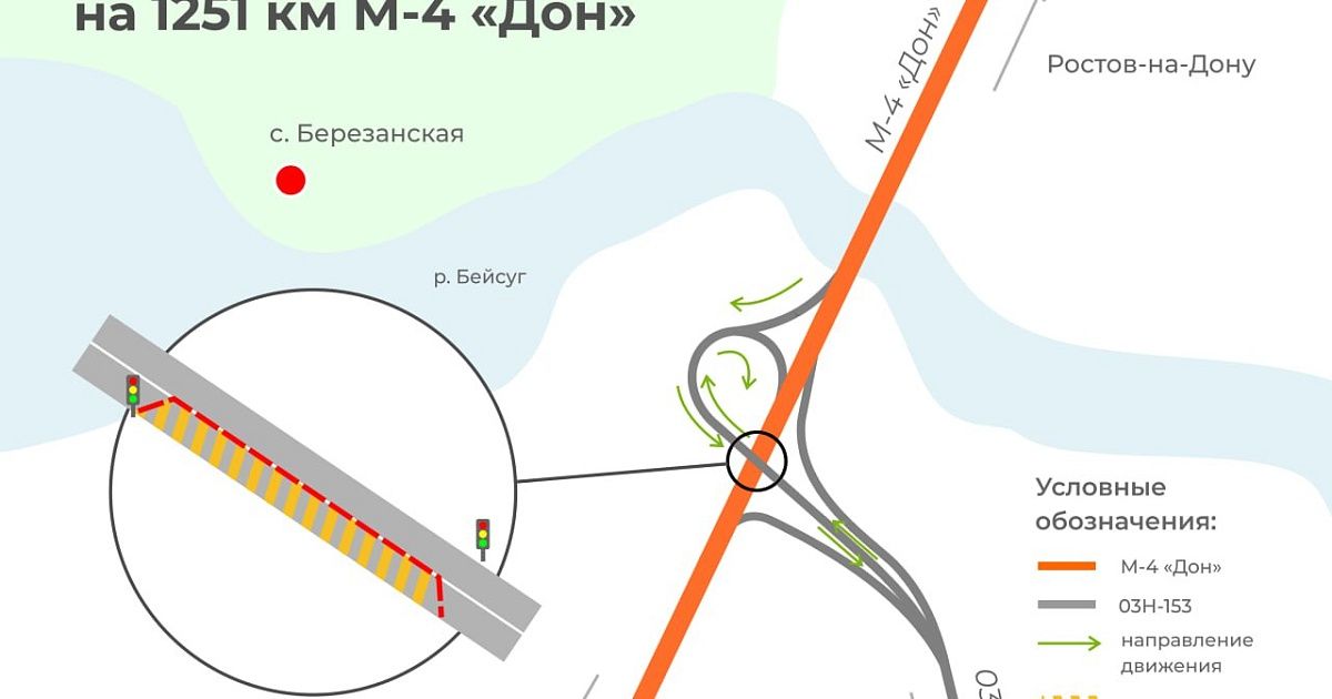 Реверсивное движение со светофорами организуют на 1251 км трассы М-4 «Дон» в Выселковском районе. Новая схема будет действовать с 5 марта до конца ноября этого года. Ограничение связано с ремонтом искусственного сооружения, когда строительно-монтажные работы завершат, движение откроют в полном объеме.