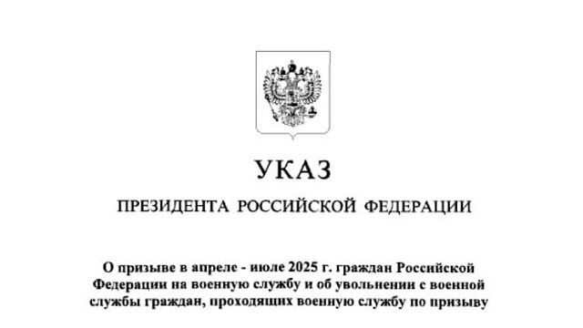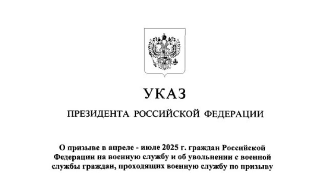 Президент РФ Владимир Путин подписал указ «О призыве в апреле – июле 2025 года. Сообщили в Минобороны.