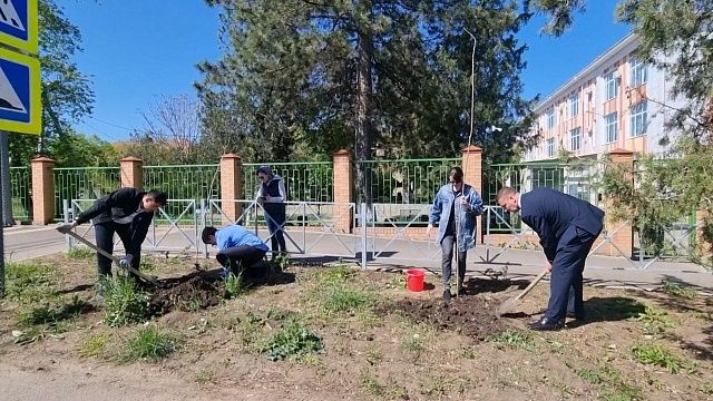Высадку провели вместе с субботником. Вместе с учениками зелёный памятник подвигам предков высадили активисты. Таким образом они примкнули к санитарному городскому марафону, который объявил глава Краснодара Евгений Наумов.