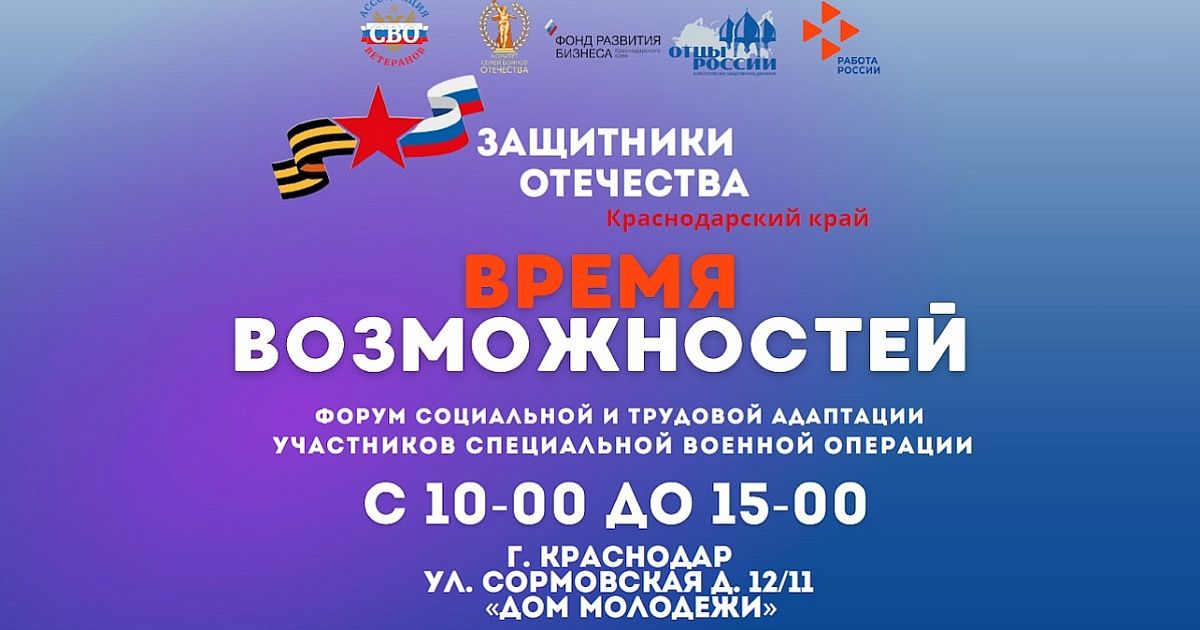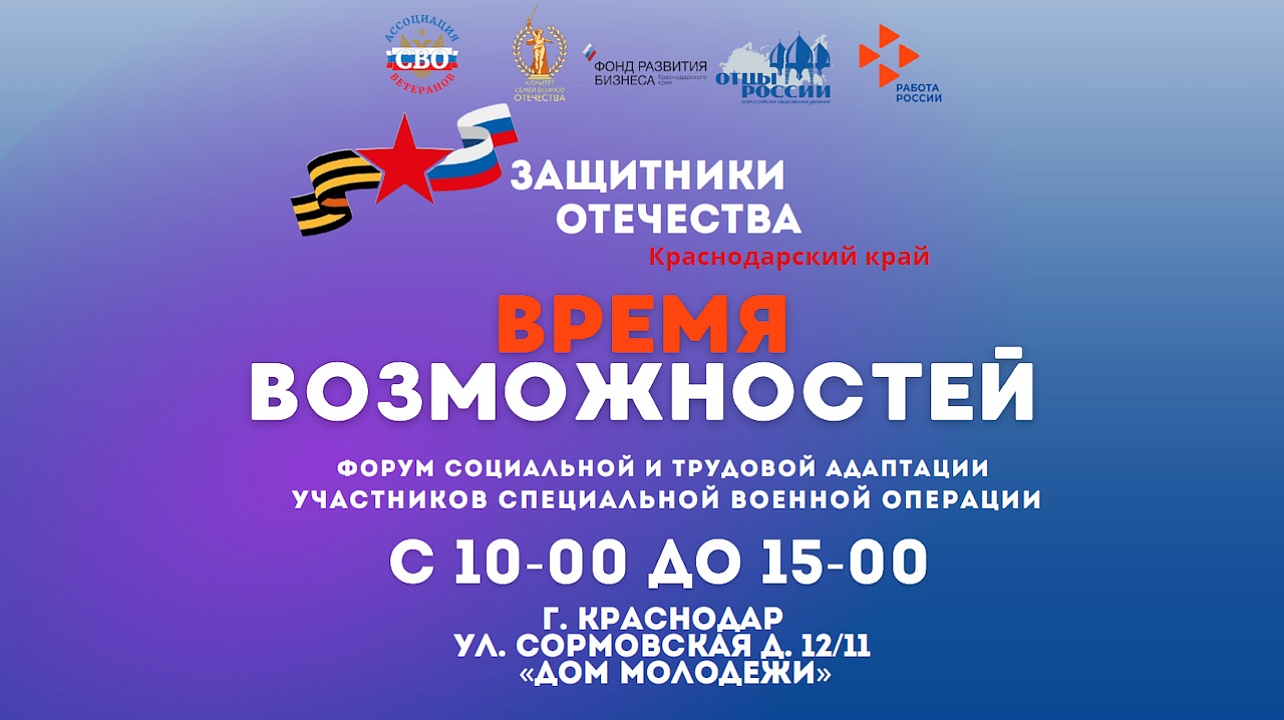 В Краснодаре в Доме молодежи 18 апреля состоится Форум социальной и трудовой адаптации участников СВО, сообщили в пресс-службе администрации города.