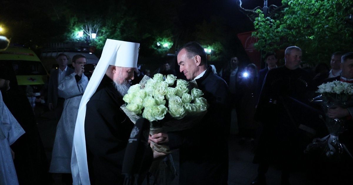 Губернатор Кубани Вениамин Кондратьев посетил пасхальную службу в Свято-Екатерининском соборе Краснодара. Митрополит Екатеринодарский и Кубанский Василий руководил литургией.