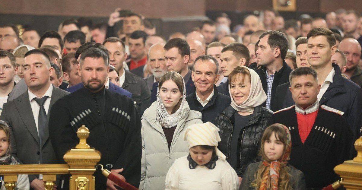 Губернатор Кубани посетил пасхальную службу вместе с семьей.