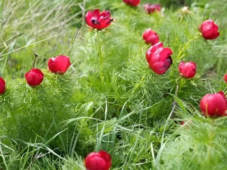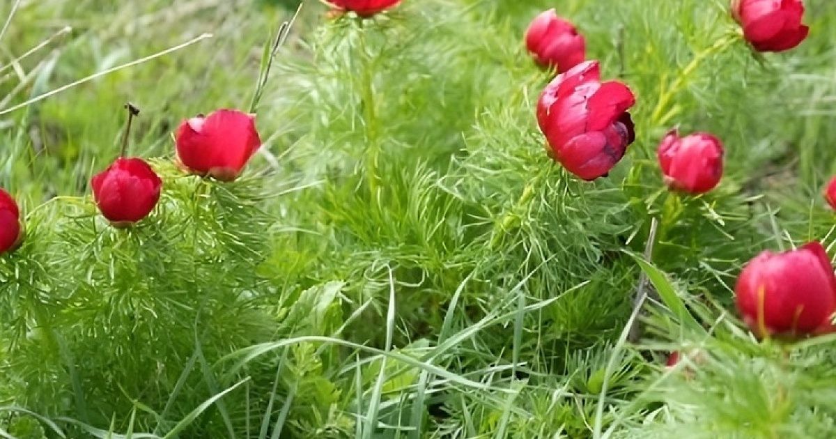 Там находятся ярко-красные пионы тонколистные. Отмечается, что численность растения уменьшается людей, которые срывают цветы для букетов.