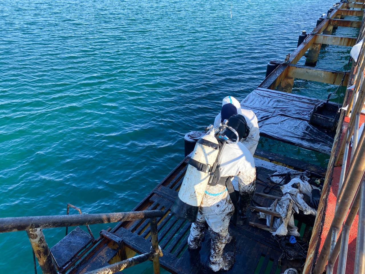 ― Водолазы собирают мазут со дна в мешки, которые после поднимают на поверхность и отправляют на утилизацию, ― прокомментировали в региональном Оперштабе.