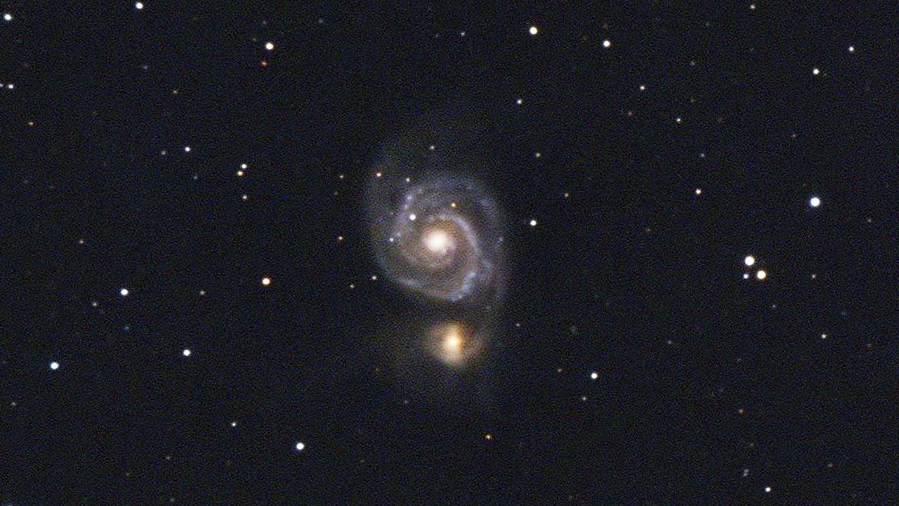 Телеоператор и фотограф Сагайдак запечатлел процесс в М51 «Водоворот». Время накопления фотонов для фотографии составил 82 минуты.