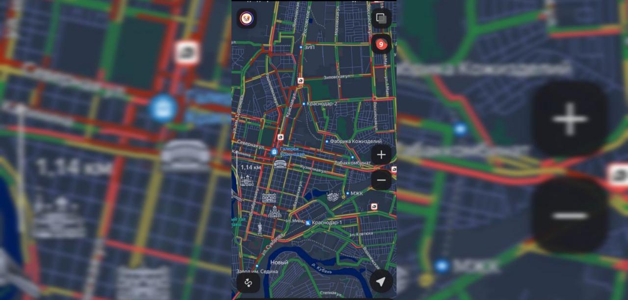 В Краснодаре образовались девятибалльные пробки, данные приводит сервис «Яндекс».