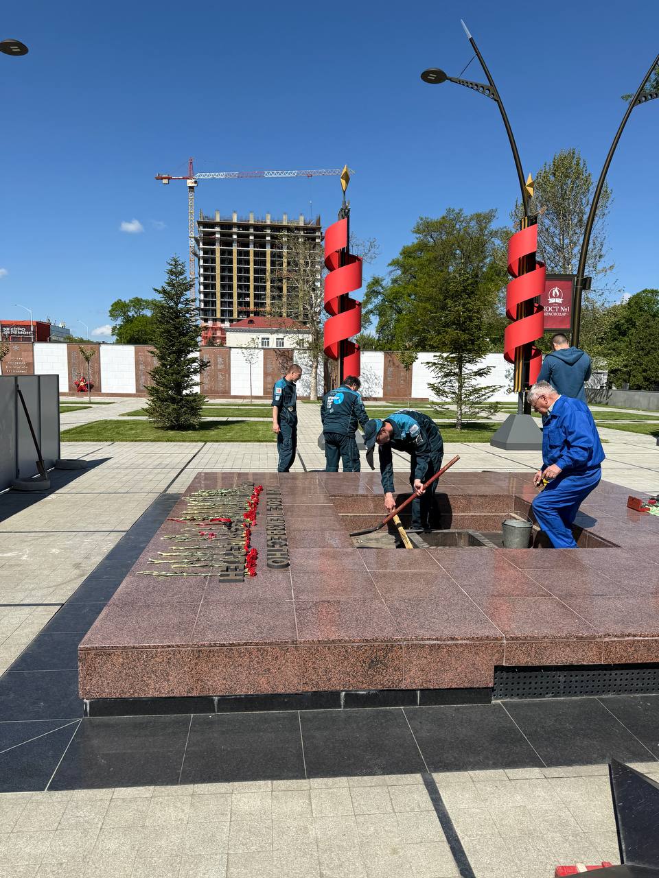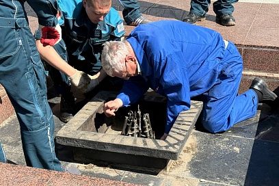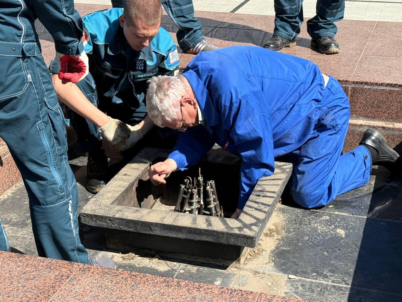В Вечном огне нашли паспорт во время технических работ в Краснодаре. На месте работал корреспондент телеканала «Краснодар».