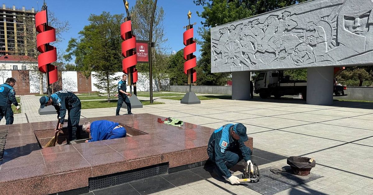Вечный огонь подготовили в преддверии празднования 80-летия Победы в Великой Отечественной Войне в Краснодаре. Специалисты очистили горелки и форсунки, а также проверили исправность всей системы.