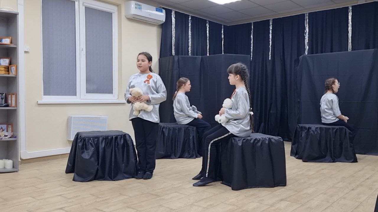 Юные артисты прочли стихи, написанные от лиц детей, переживших все ужасы Великой Отечественной Войны. Событие приурочили к 80-летию Великой Победы.
