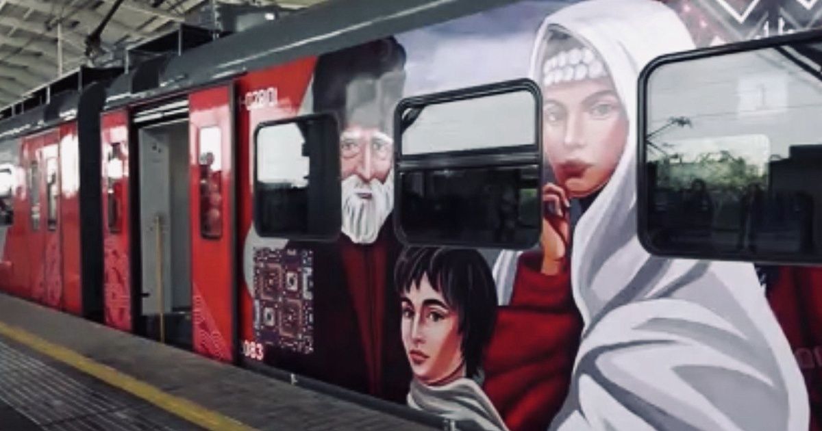 Поезд получил название «Диоскурия» — так в древности назывался греческий город, располагавшийся на территории современного Сухума. Идея названия принадлежит школьникам из Абхазии. Оформление электропоезда выполнено на основе детских рисунков — финалистов Международного конкурса «Грани творчества». Внутреннее убранство дополнено фотографиями и произведениями юных художников.