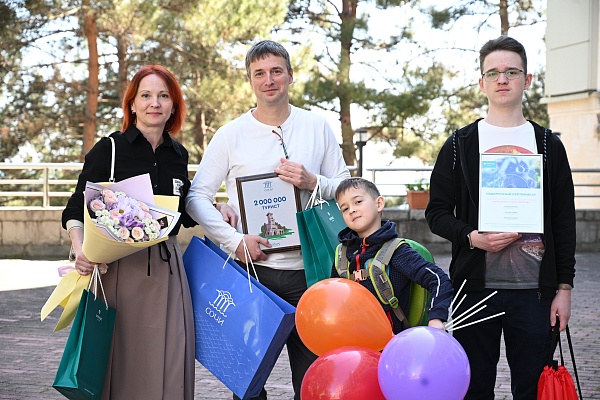 Юрий Тренов из Костромы стал двухмиллионным туристом, посетившим Сочи в этом году. Он приехал на отдых с женой и детьми. Представители городской администрации и руководство санатория устроили ему торжественную встречу, вручив памятный сертификат и подарки для всей семьи.