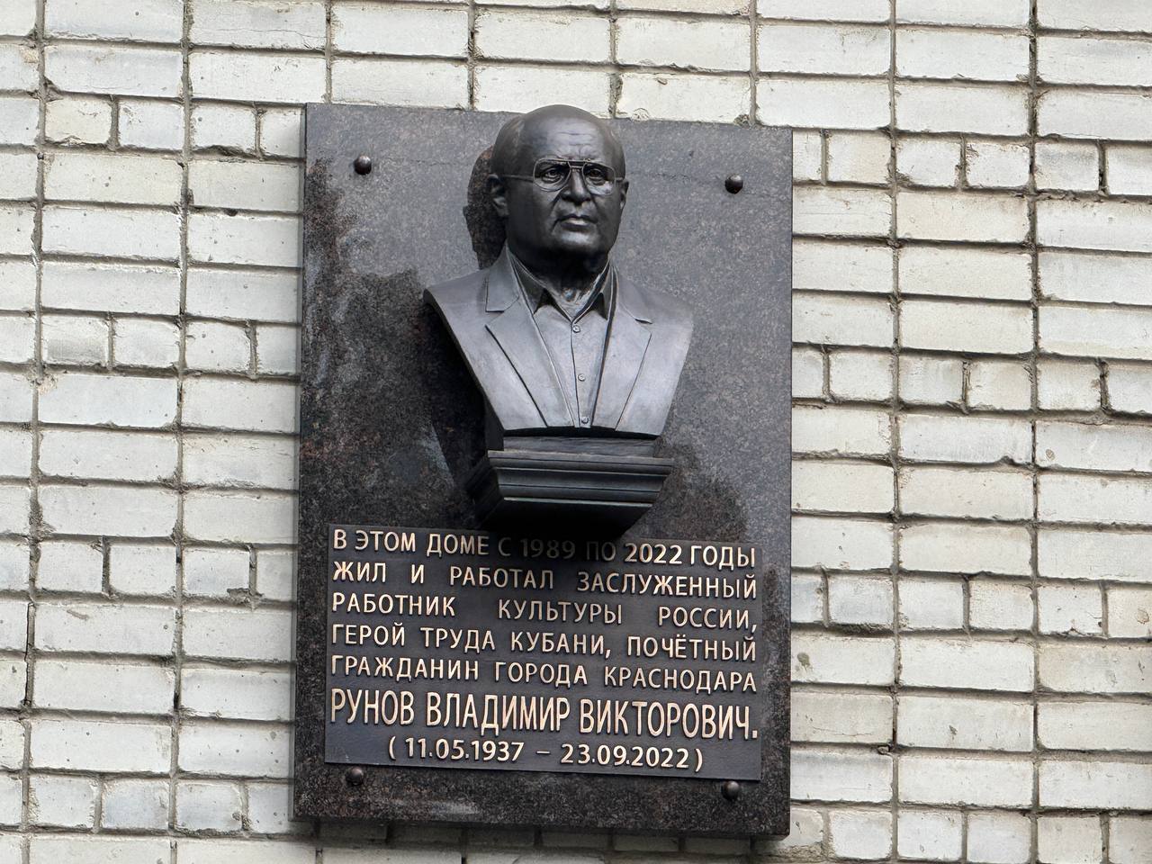 В Краснодаре состоялось открытие мемориальной доски, посвященной памяти знаменитого журналиста Владимира Рунова. В церемонии открытия приняли участие сын журналиста, Александр Рунов, и ректор Краснодарского государственного института культуры Сергей Зенгин. Доску установили на фасаде дома, где жил журналист, рассказали в ТГ-канале медиахолдинга «Краснодар».