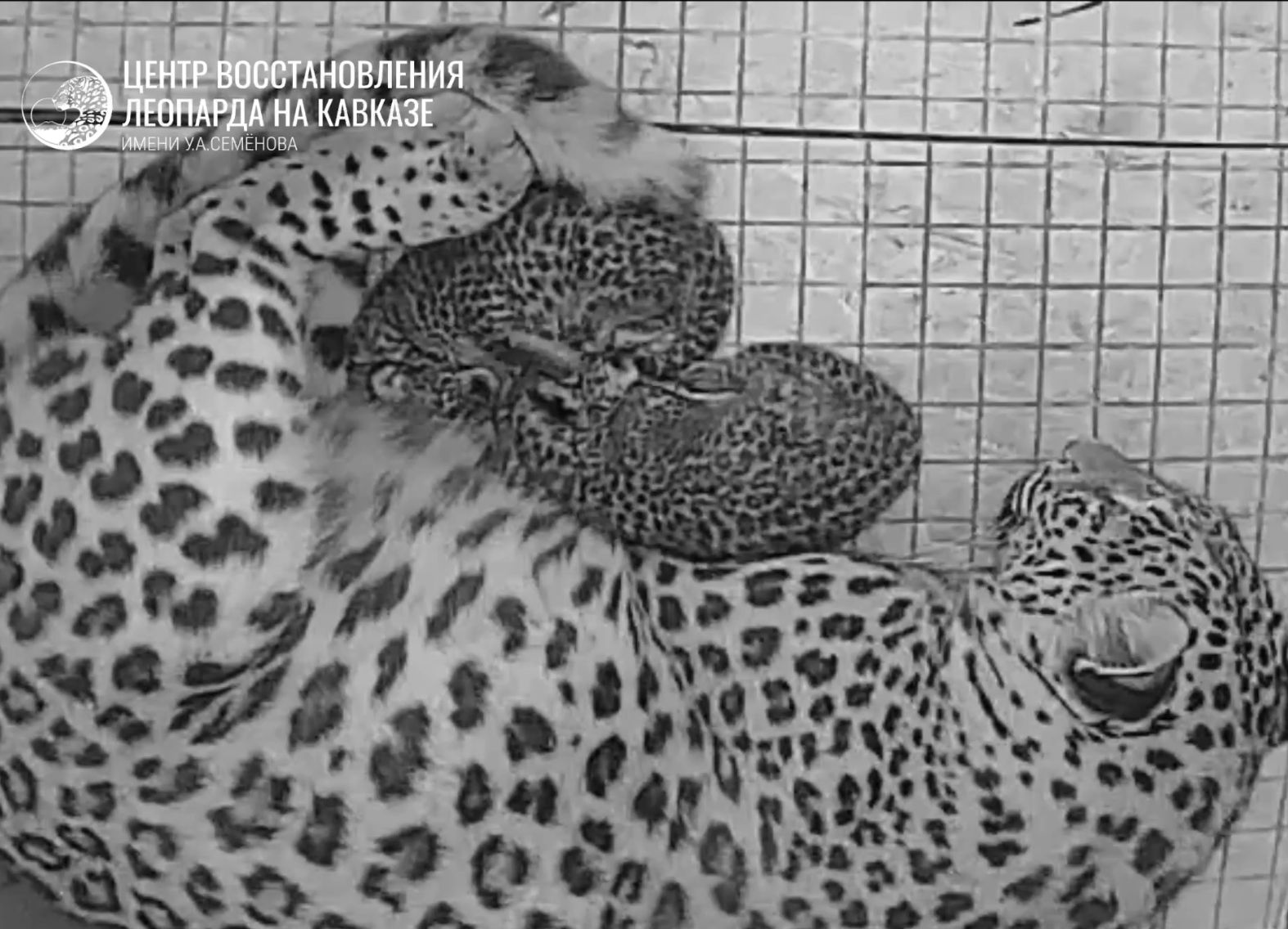 ― Первое время самка особенно трепетно относится к появлению приплода и не выходит из логова даже чтобы попить воды. Котята чувствуют себя хорошо, ― рассказали в Центре восстановления леопарда на Кавказе.