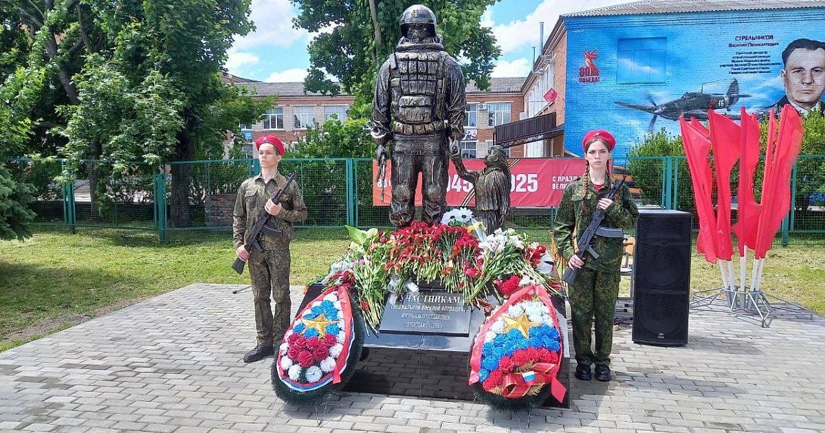 Памятник открыли глава сельского поселения Татьяна Марчук и атаман Ладожского хуторского казачьего общества Вадим Быченко. Также на торжество пришли участники СВО, ветераны боевых действий, общественники, жители станицы, добровольцы.