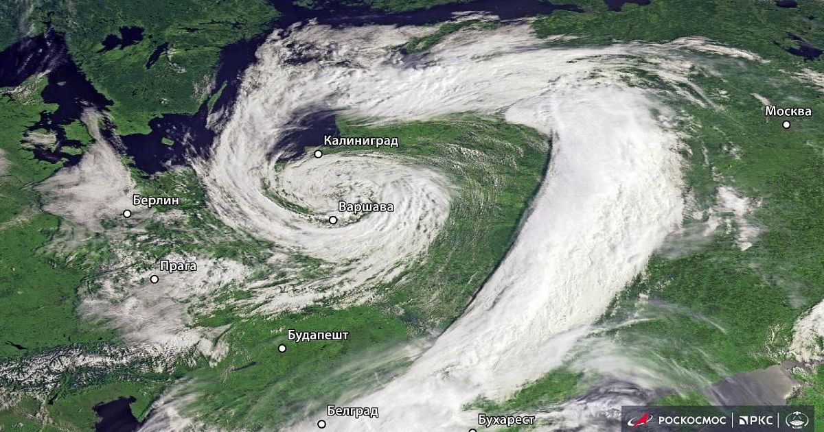 Кадры сделаны с отечественных спутников «Электро-Л» и «Арктика-М», отслеживающих развитие непогоды в режиме реального времени. Как пояснили в Гидрометцентре, речь идёт о малоподвижном южном циклоне, сопровождаемом атмосферными фронтами, что влечёт за собой нестабильную погоду с дождями, грозами и резкими порывами ветра.