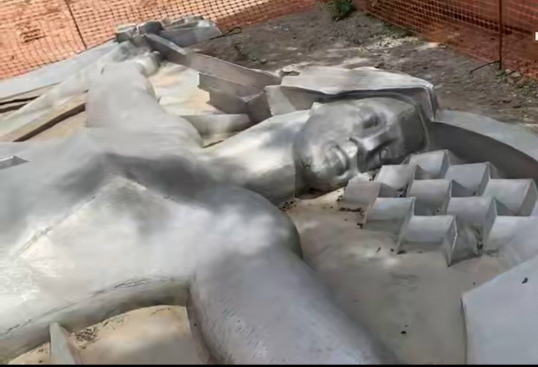 Рельефное изображение, ранее располагавшееся на здании НЭСК на улице Котовского, ожидает перерождение. После демонтажа с фасада, он был перемещен на временное хранение.
