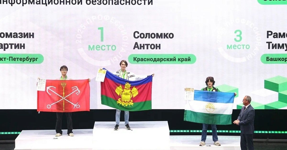 Антон Соломко, учащийся Краснодарского колледжа электронного приборостроения, занял первое место в компетенции «Защита корпоративных информационных ресурсов от внутренних угроз». Кроме того, он получил ещё одну золотую медаль — за командную работу с участником из Красноярского края.