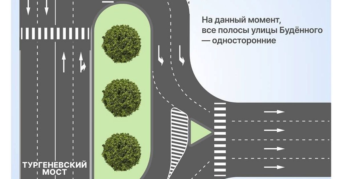 Плюс разрешат поворот с Буденного на Тургенева. Одностороннее движение отменено. Автомобилисты смогут проехать как в центр, так и на Фестивальный. Это должно разгрузить прилегающие дороги.