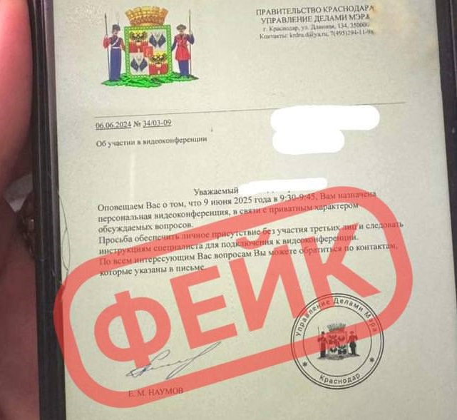Власти Краснодара рассказали о новой волне мошеннических действий. Глава города Евгений Наумов показал фейковое постановление, в котором было использовано его имя. Мэр подчеркнул, что злоумышленники рассылают поддельные постановления и совершают звонки, выдавая себя за представителей администрации.