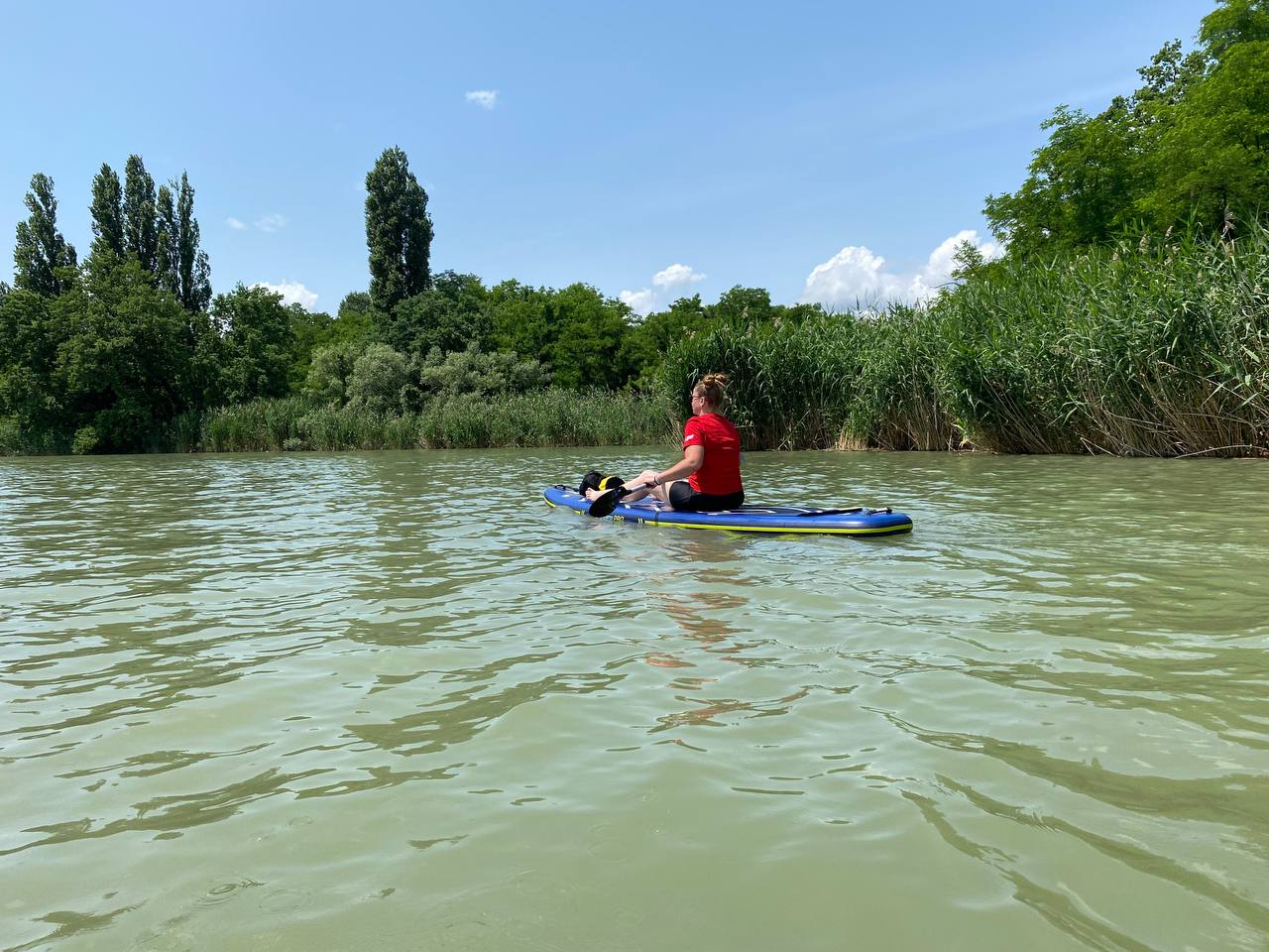 Общественники решили совместить приятное с полезным: устроили тренировку на сапах, а также собрали отходы, которые нерадивые горожане побросали на прибрежной линии после праздничных пикников.