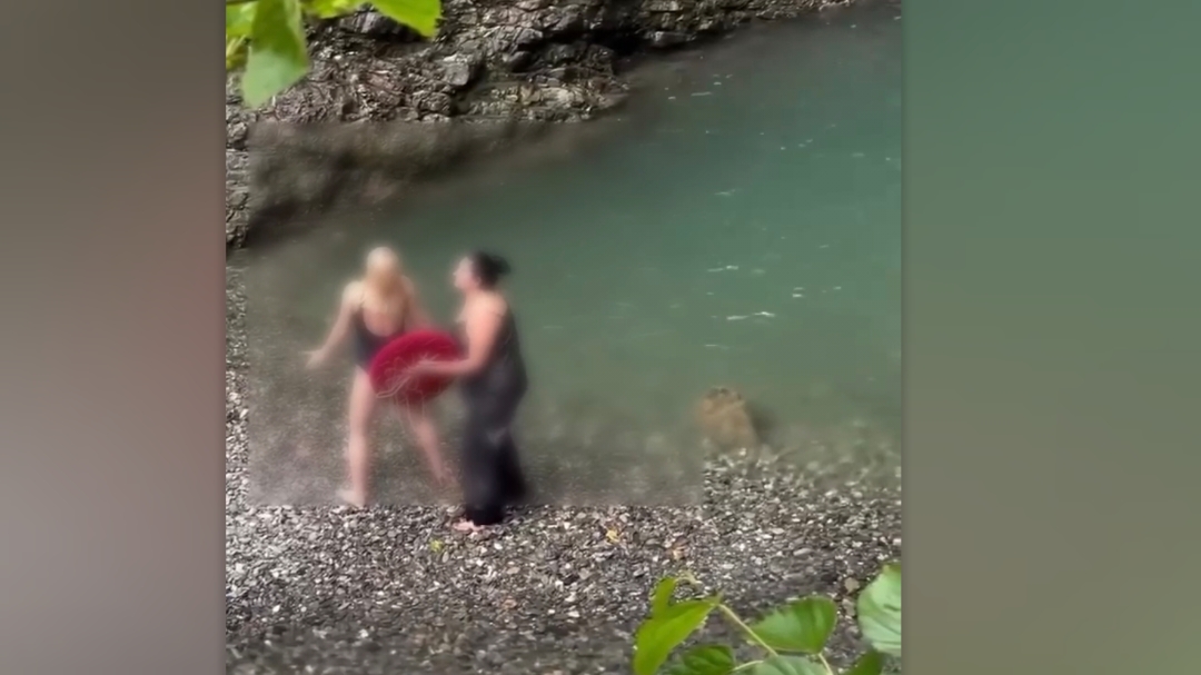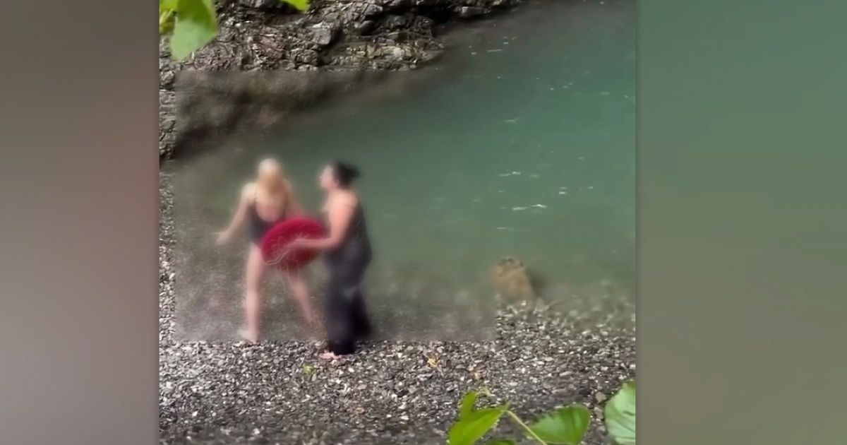 Очевидцы сняли шаманский ритуал с полуголыми женщинами на Ореховском водопаде. Кадрами поделились с Telegram-каналом телеканала «Краснодар».