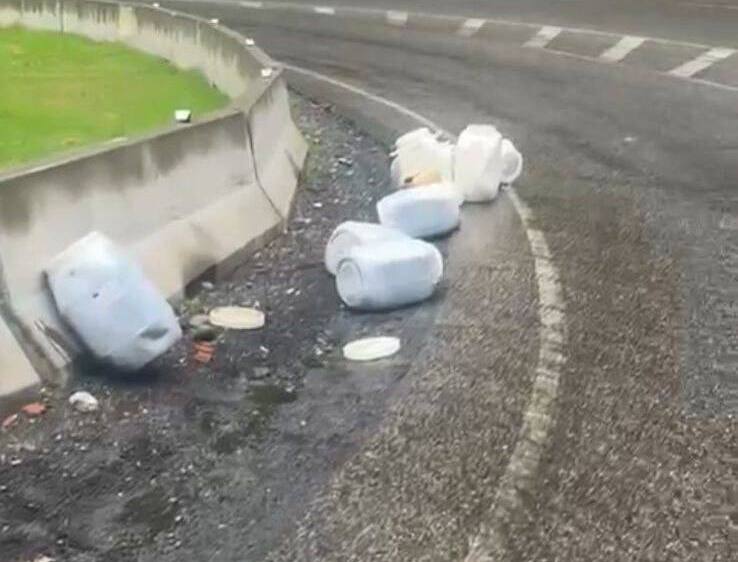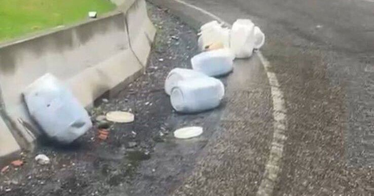 В канистрах было машинное масло, которое разлилось по трассе и превратило ее в каток. Из-за этого на участке в течении нескольких часов было затруднено движение.