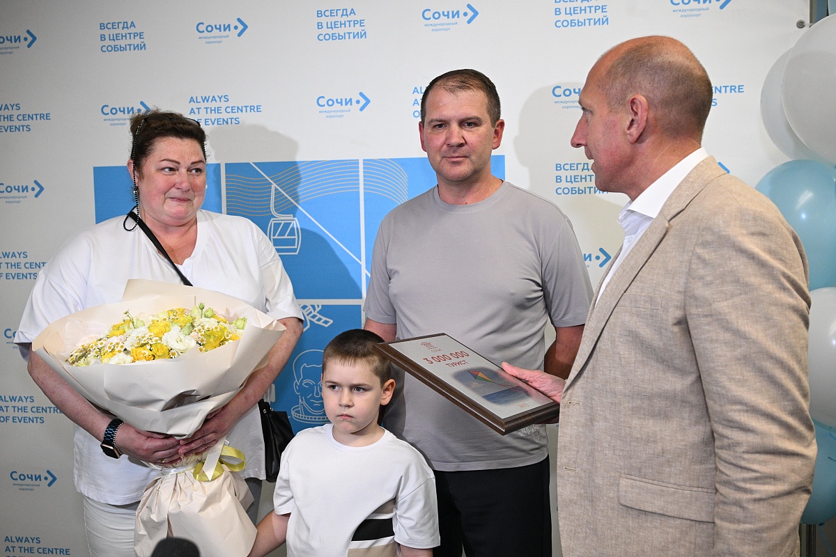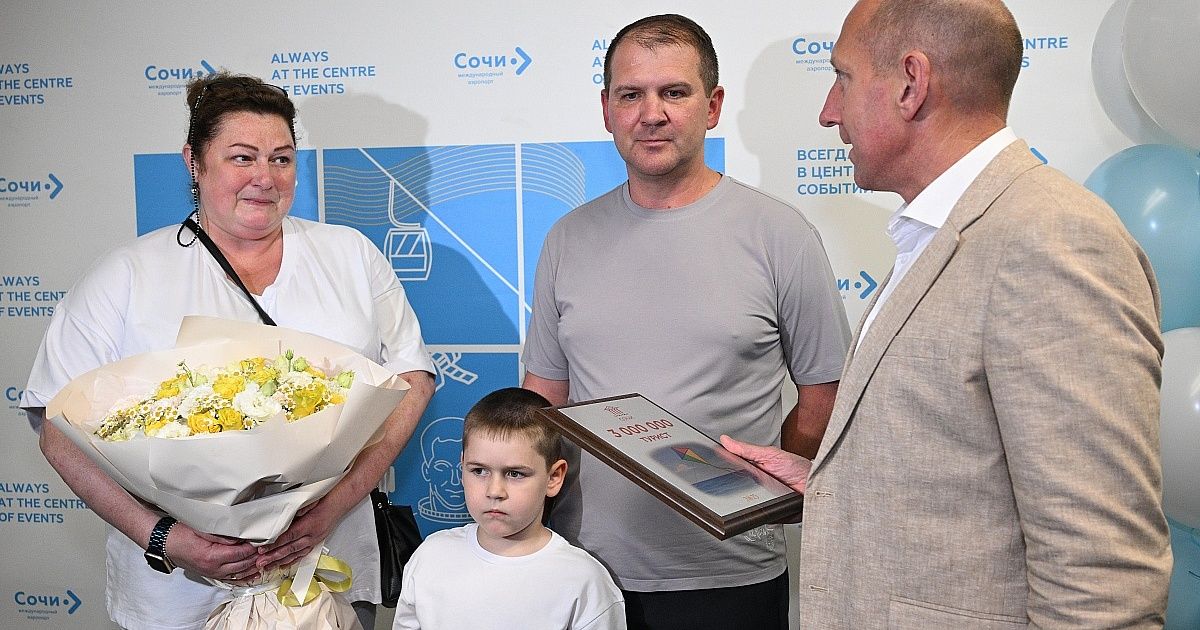 В аэропорту Сочи встретили трёхмиллионного туриста с начала 2025 года. Им стал Юрий Пирог, прилетевший из Москвы вместе с супругой и внуком. В аэропорту семью ожидал тёплый приём с участием представителей городской администрации, руководства аэропорта и отеля, где они планируют отдыхать.