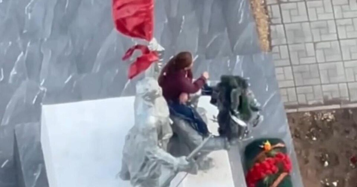 В Улан-Удэ женщина в нетрезвом состоянии осквернила памятник, посвящённый красногвардейцам и партизанам, погибшим в боях за освобождение Верхнеудинска в 1920 году, видео опубликовал телеграм-канал «Весь Улан-Удэ».
