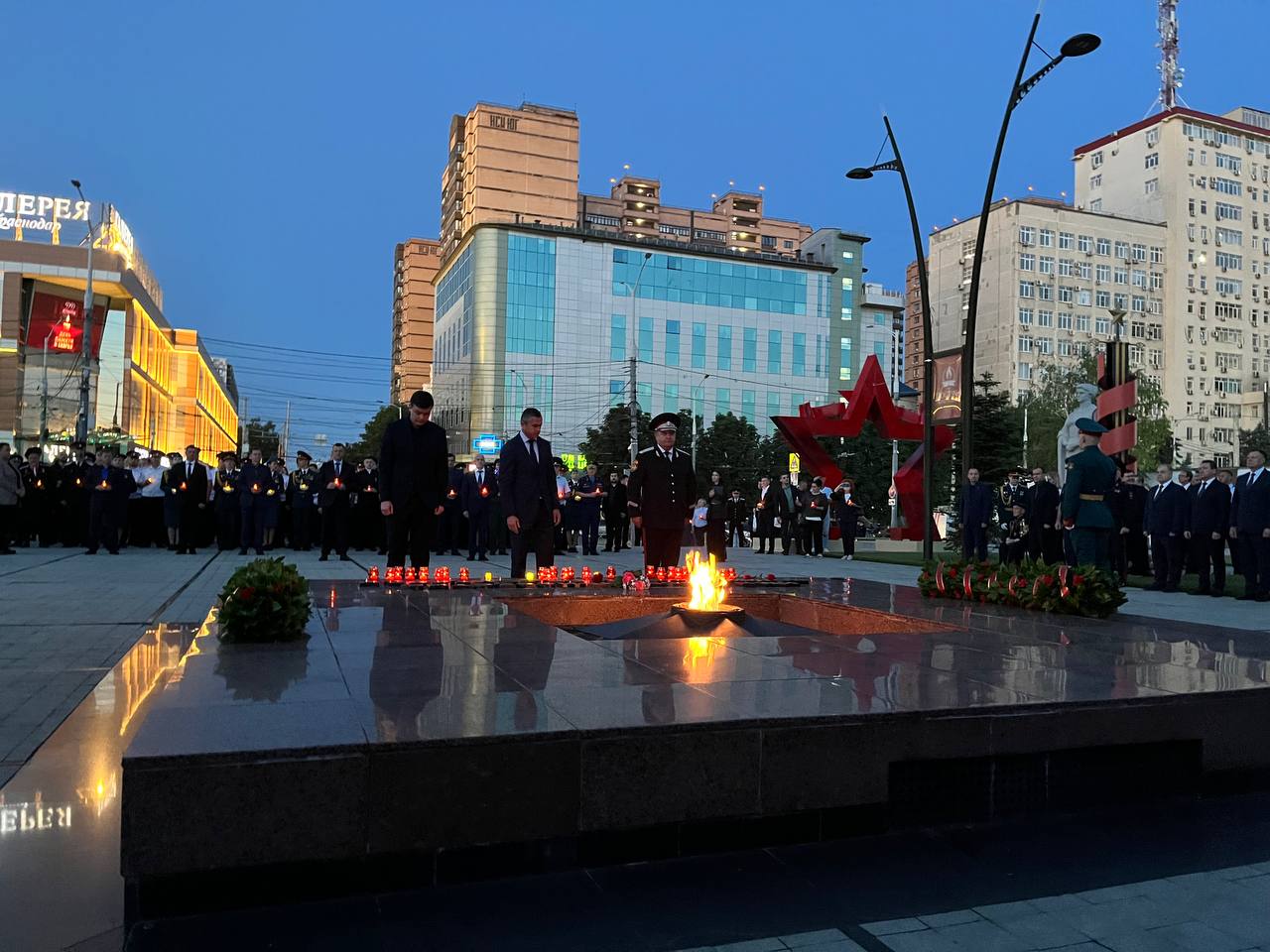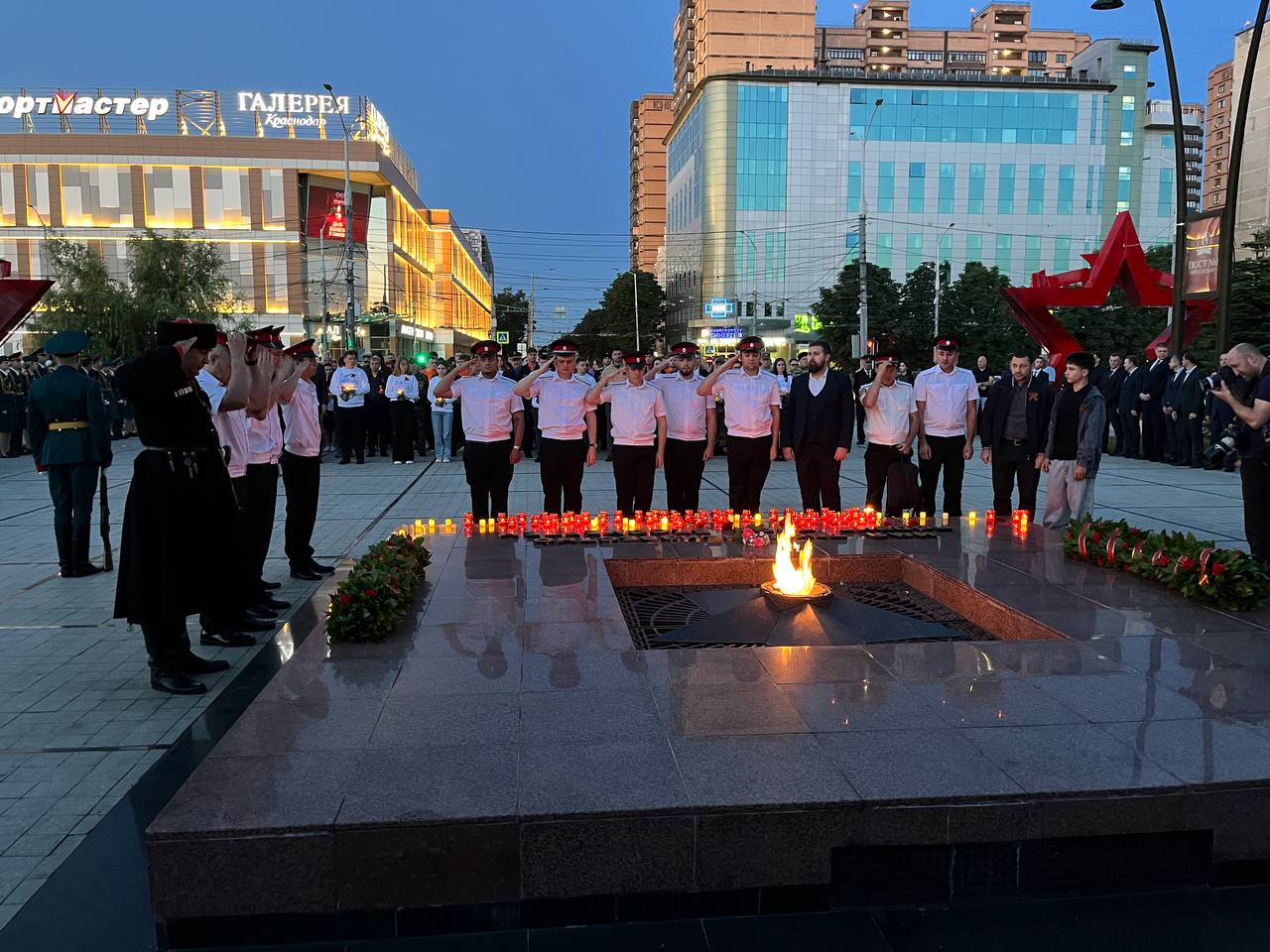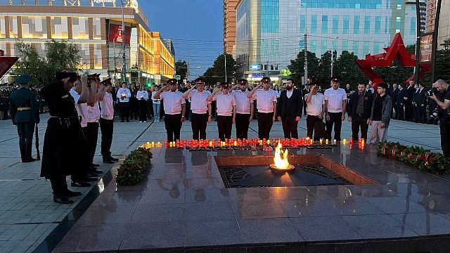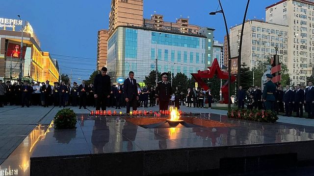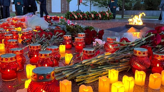 Утром 22 июня, в день начала Великой Отечественной войны, в Краснодаре прошла церемония памяти у мемориала Вечного огня. Губернатор Краснодарского края Вениамин Кондратьев, глава города Евгений Наумов и представители региональных и городских ведомств приняли участие в возложении цветов и лампад.