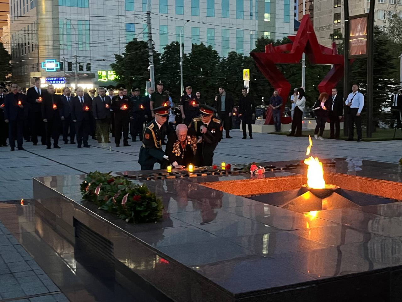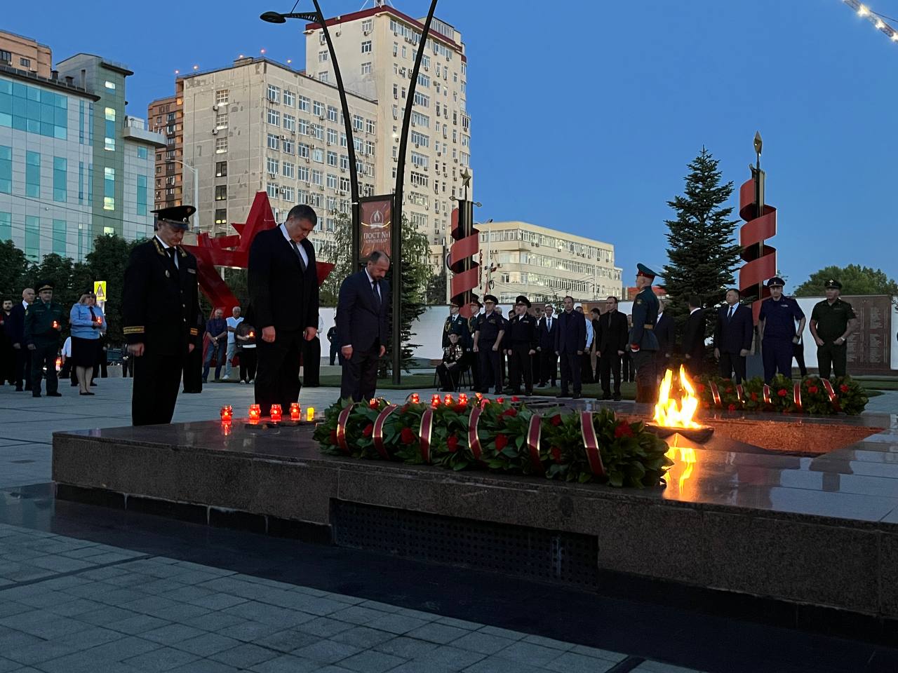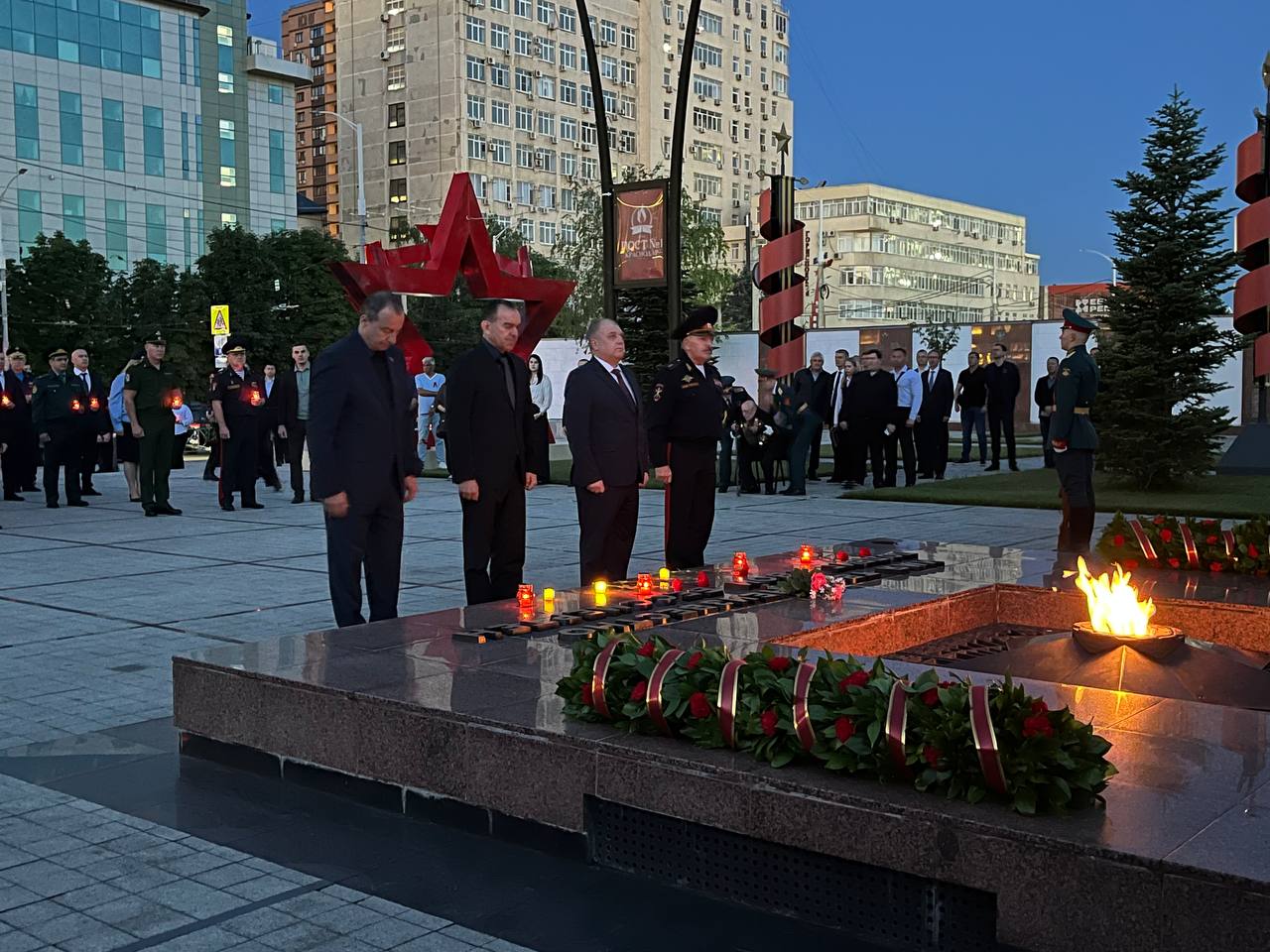 Утром 22 июня, в день начала Великой Отечественной войны, в Краснодаре прошла церемония памяти у мемориала Вечного огня. Губернатор Краснодарского края Вениамин Кондратьев, глава города Евгений Наумов и представители региональных и городских ведомств приняли участие в возложении цветов и лампад.