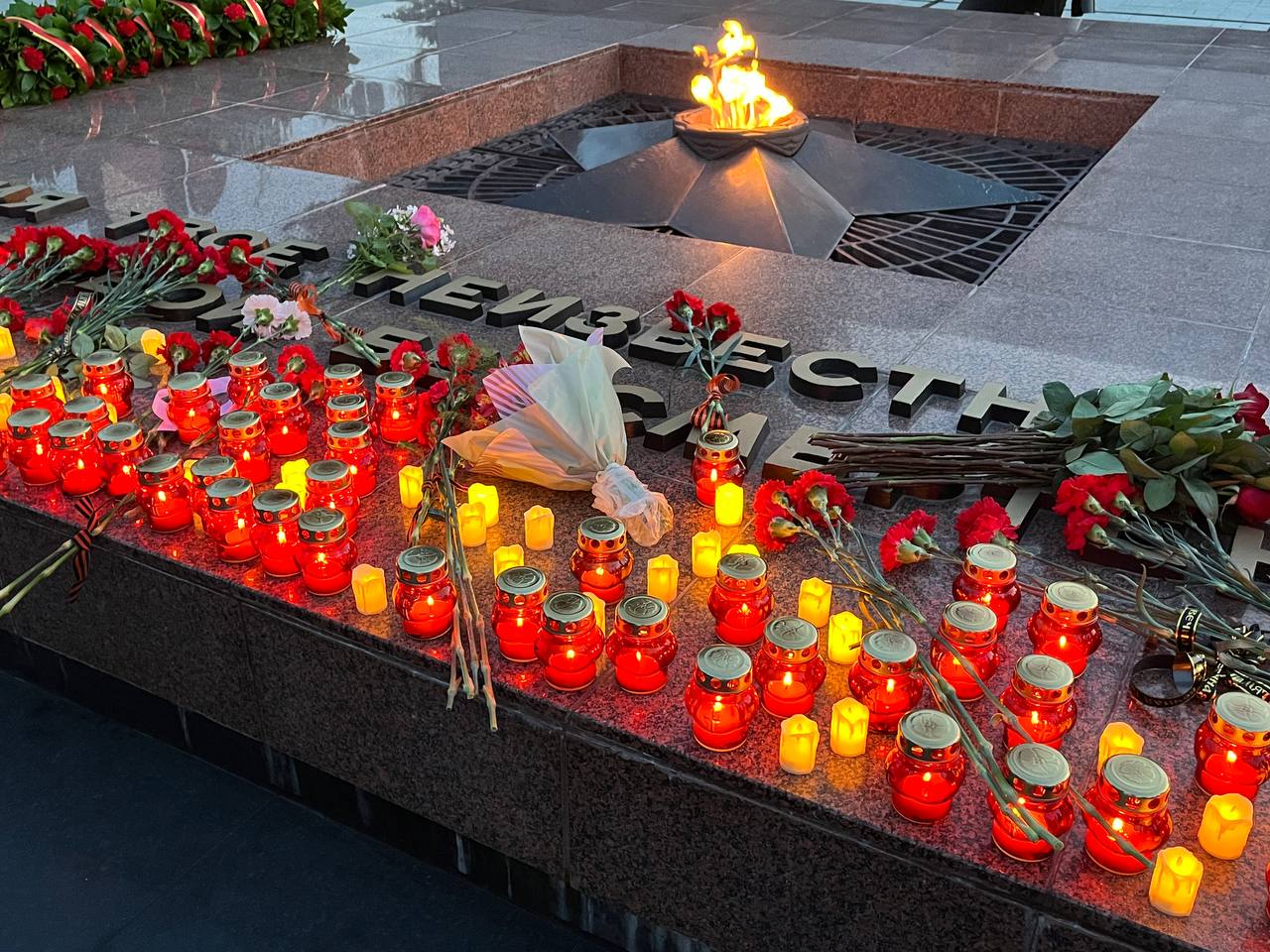 Цветы и лампады возложили у Вечного огня на Площади Памяти Героев.