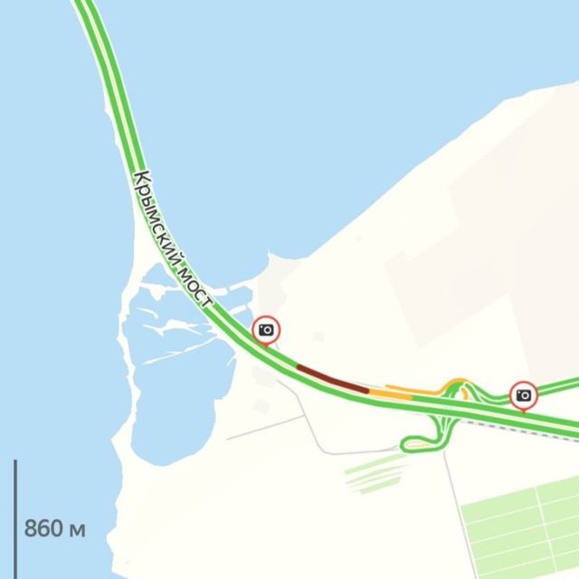 Утром 1 июля на Крымском мосту образовалась пробка со стороны Тамани. По состоянию на 09:00 в очереди на досмотр скопилось около 900 транспортных средств, а время ожидания составляет приблизительно три часа.