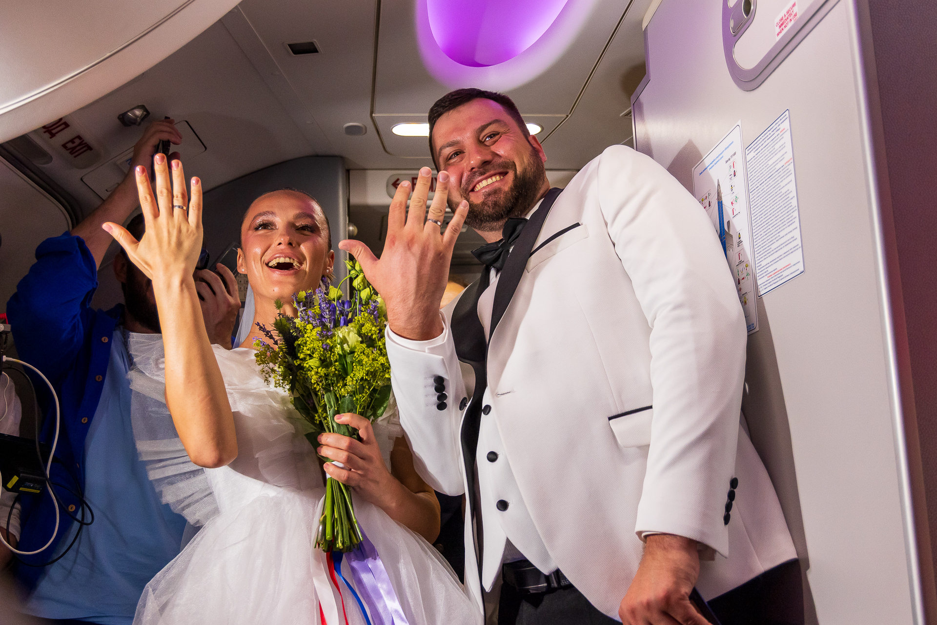 В День семьи, любви и верности состоялось необычное торжество: сразу восемь пар зарегистрировали свои отношения на высоте 11 тысяч метров на рейсе Москва – Сочи. Полет назвали свадебным. Роль регистратора сыграл дополнительный пилот, а молодожёны обменялись кольцами в присутствии других пассажиров.