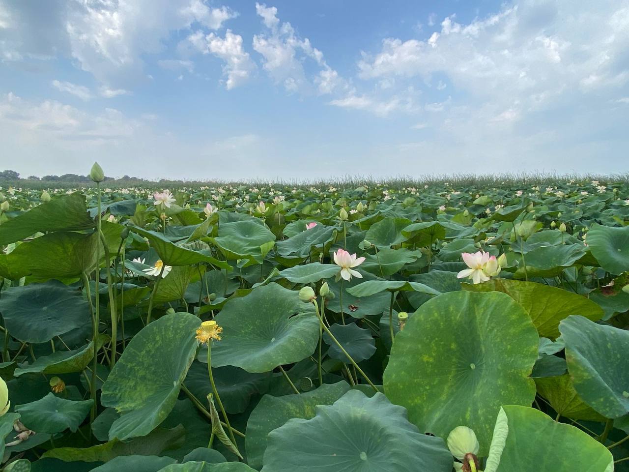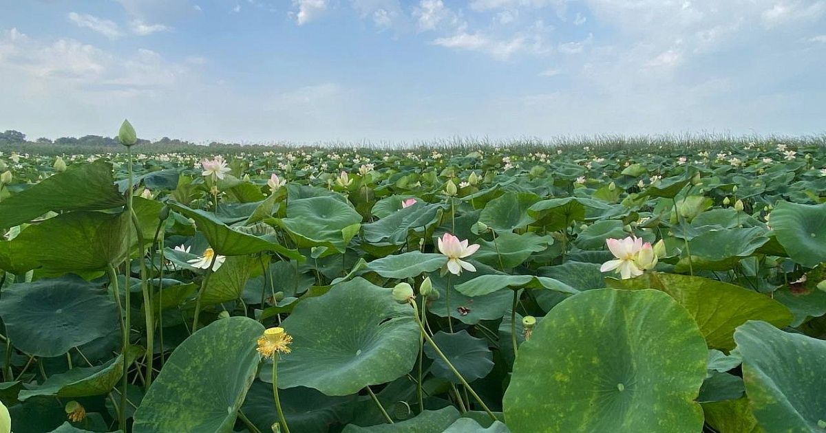 Аномальная жара и отсутствие осадков привели к падению уровня воды в озере лотосов, что создало угрозу для произрастания растений. Водоем находится в станице Елизаветинской недалеко от Краснодара. Это местная достопримечательность, которая привлекает туристов со всего региона.