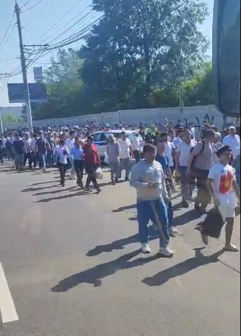 В Красноярске тысячи мигрантов вышли вдоль автотрассы, ролик опубликовал телеграм-канал «Русские Новости».