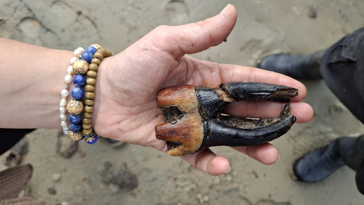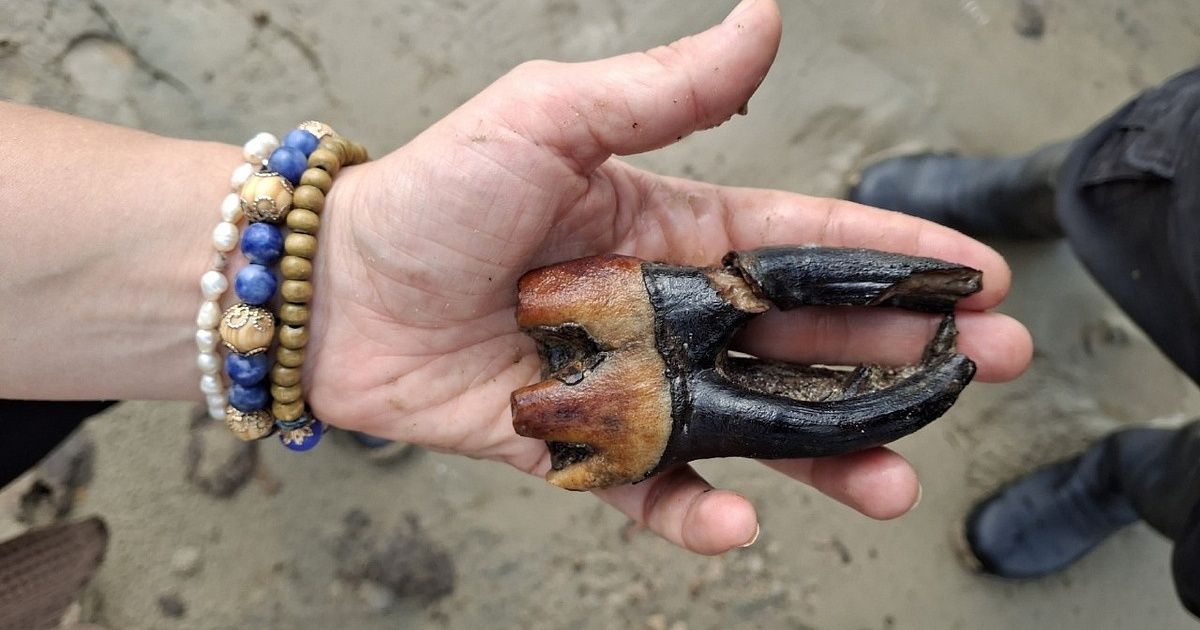 В Оби под Новосибирском исследователи наткнулись на гигантский зуб шерстистого носорога. Отмечается, что зуб был угольного цвета, об этом рассказал основатель компании «Территория Сибири» Вячеслав Карманов.