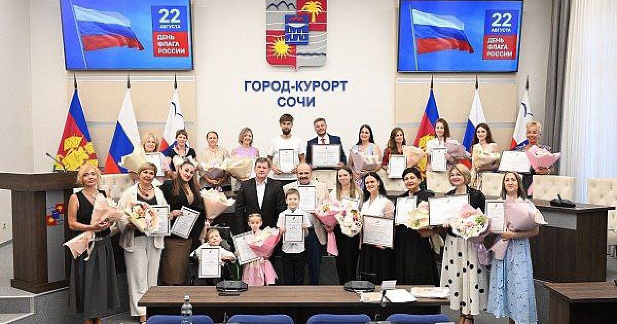 В Сочи чествовали победителей ежегодного конкурса «Гордо реет флаг державный», посвященного Дню Государственного флага России. Конкурс призван воспитать уважение к символам страны.