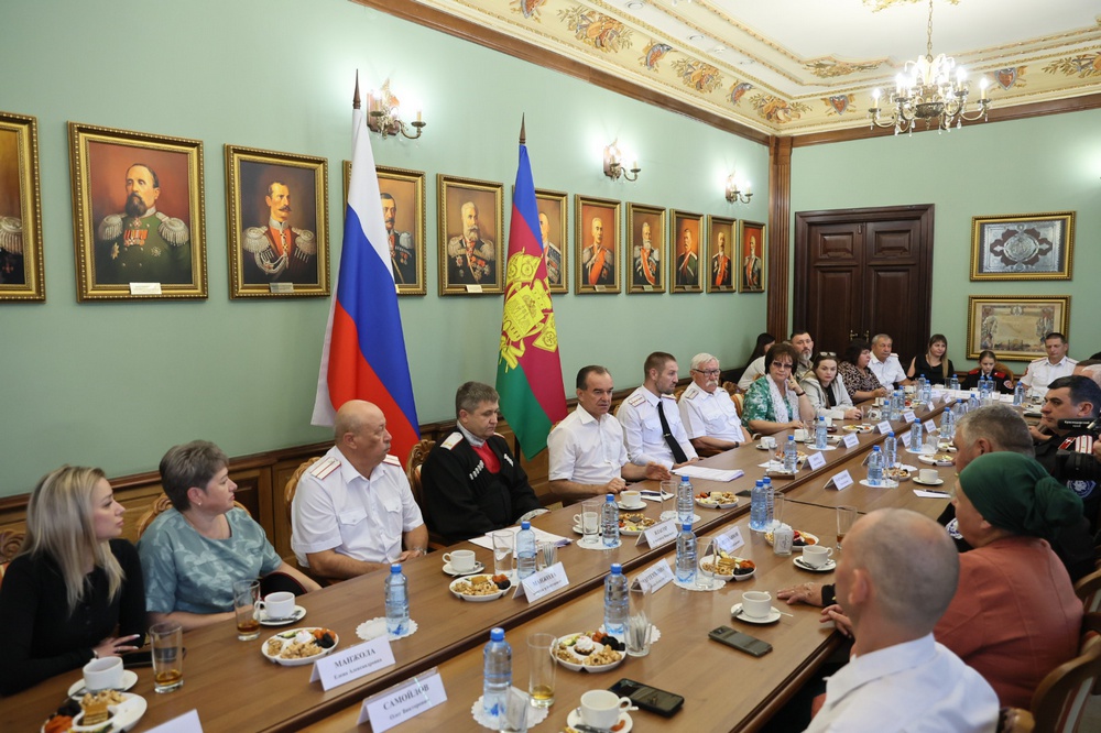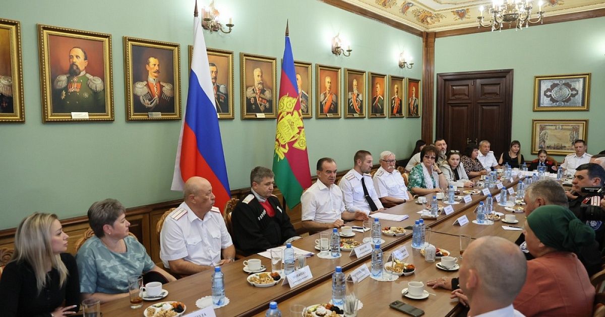 Губернатор Краснодарского края Вениамин Кондратьев встретился в Краснодаре с казачьими семьями. Во встрече приняли участие замглавы региона, атаман Кубанского казачьего войска Александр Власов и депутат Госдумы Дмитрий Пирог.