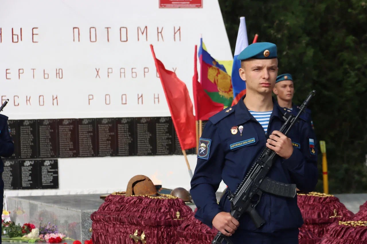 Прощание прошло у Братской могилы советских воинов. В мероприятии приняли участие представители краевых властей, местной администрации, ДОСААФ России, казаки, школьники, жители поселка и поисковики. Память павших почтили минутой молчания.