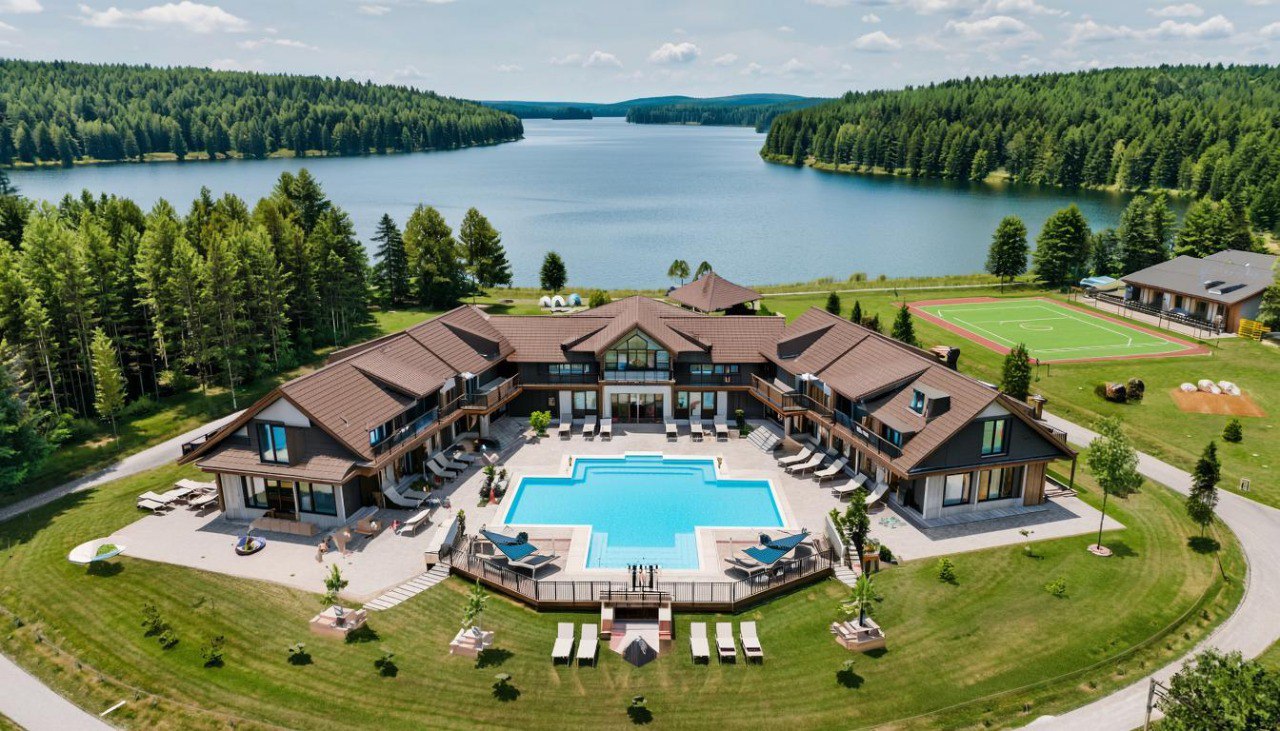 По словам гендиректора компании Нины Резниченко, речь идет о резиденции площадью около 1,4 тысячи квадратных метров, расположенной на участке более пяти гектаров с вековыми соснами. На территории комплекса также находятся гаражный блок, несколько гостевых домов, спортивный зал с бассейном, SPA-комплекс и теннисный корт.