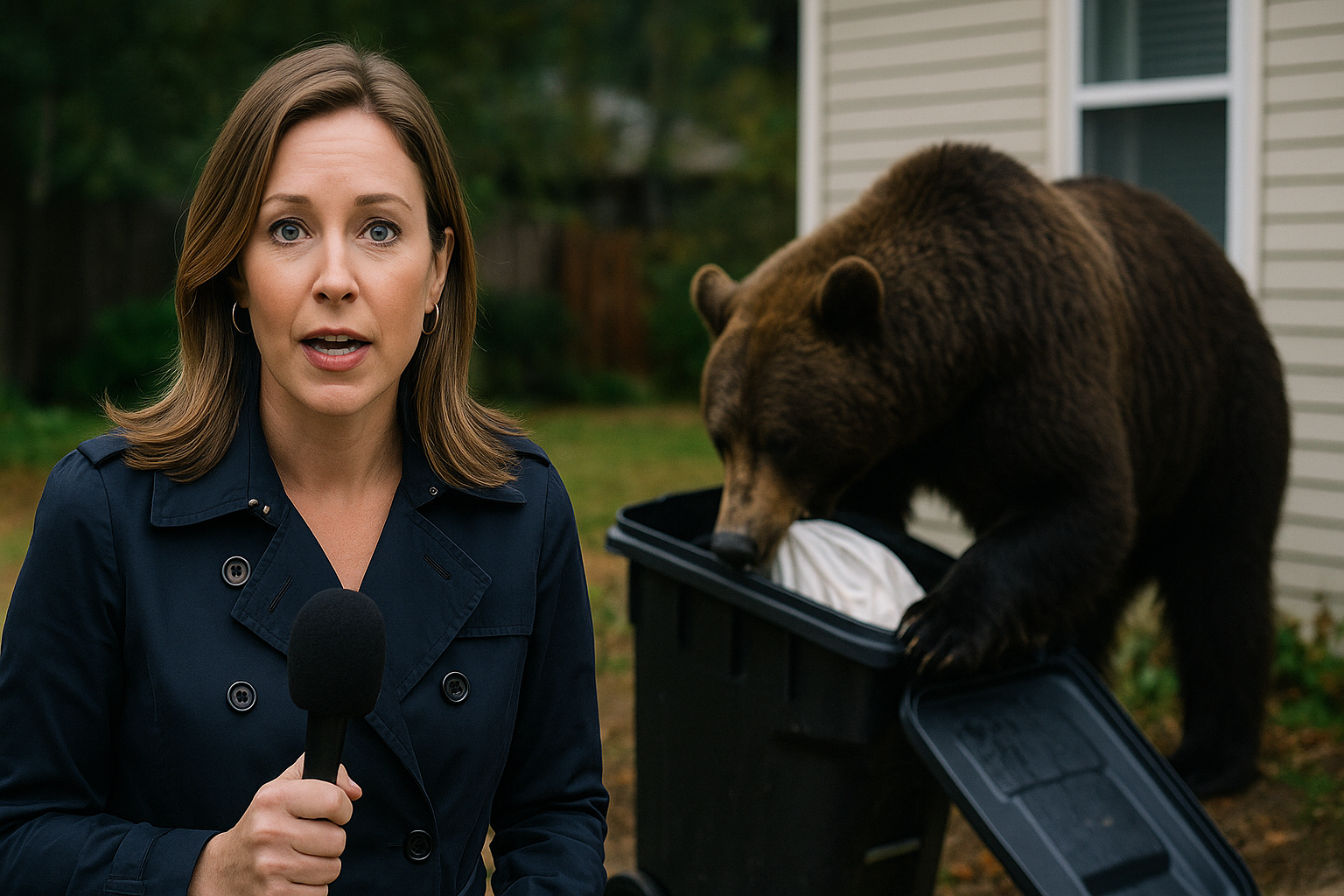 В какой-то момент Майерс заметила, что за ее спиной к дому подошел бурый медведь и начал вытаскивать мусор из бака. Телеведущая сохраняла спокойствие и предупредила зрителей о происходящем. «У нас здесь небольшой сюрприз — медведь. Мы находимся к нему достаточно близко, но в то же время далеко, чтобы успеть запрыгнуть в фургон, если это понадобится», — сказала она, обращаясь к коллегам в студии.