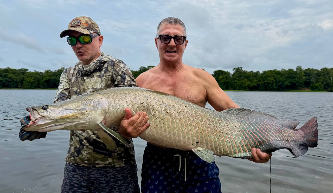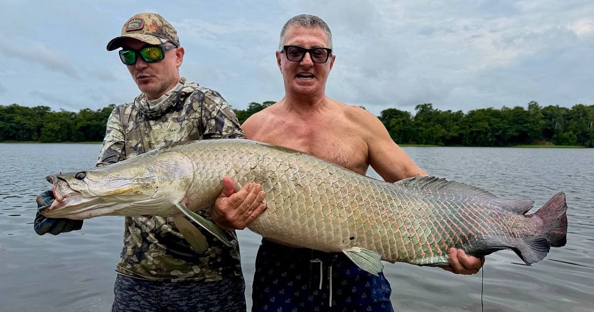 Врач и телеведущий добыл арапайму длиной 170 сантиметров и отпустил её обратно в реку.