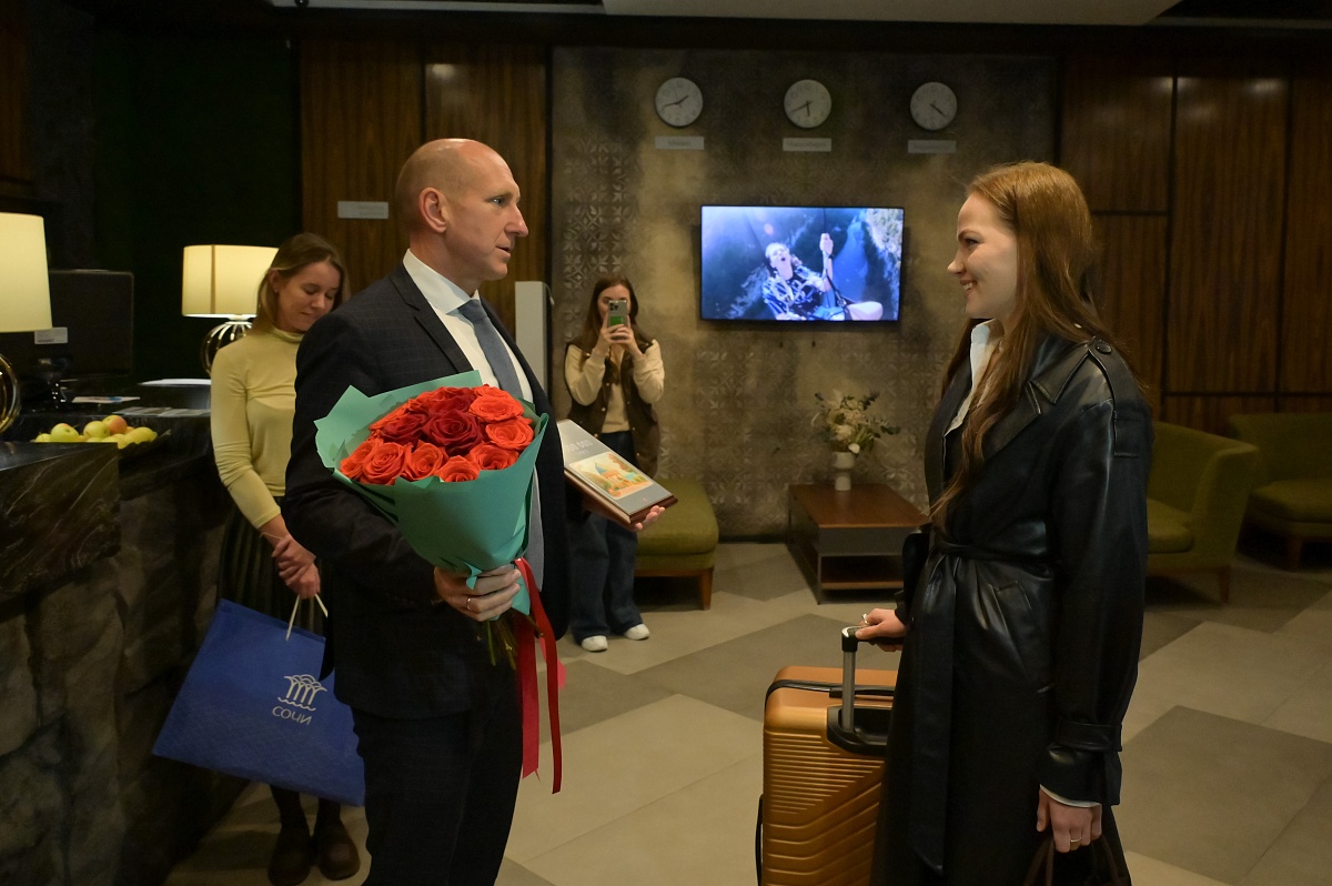 Сочи преодолел отметку в 7 миллионов туристов с начала 2025 года. Юбилейной гостьей стала Ирина Кравченко из Сыктывкара, выбравшая для отдыха не летний пляжный сезон, а горный кластер. В Эстосадке её торжественно встретили представители администрации и гостиничного комплекса, вручив памятные подарки и сертификат от имени главы города Андрея Прошунина.