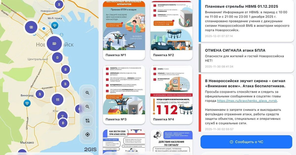 В Новороссийске запустили новый цифровой инструмент для помощи жителям в условиях чрезвычайных ситуаций. Мобильное приложение «Безопасный Новороссийск» представил 2 декабря глава города Андрей Кравченко. По его словам, сервис создан в ответ на участившиеся атаки и перебои мобильной связи.