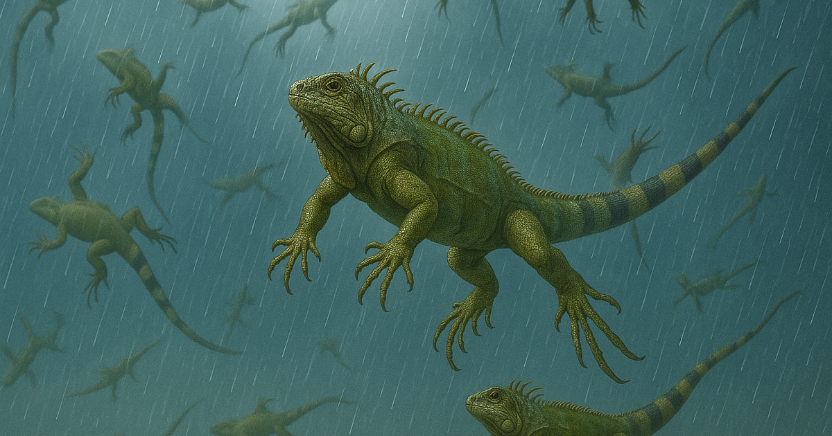Как сообщает Metro, на этой неделе во Флориде установилась непривычно холодная погода. Сильный поток воздуха с севера понизил температуру настолько, что она приблизилась к критическому порогу для местных игуан. Эти крупные рептилии, обитающие в основном на высоких деревьях, плохо переносят холод. Низкие температуры сковывают ящериц. В таком состоянии они могут выпадать из крон.